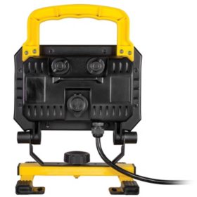 The honeywell led collapsible work light with rotating the honeywell led collapsible work light with rotating light head has 3000 lumens of light output and an adjustable base for easy transport deployment and storage.