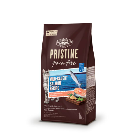 Pristine grain free wild caught salmon chickpea recipe dog food provides 100 complete and balanced nutrition for all life stages of dogs.