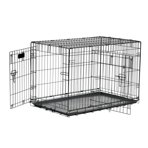 Dog crate kennel pet cage for large medium dogs travel metal double door folding indoor outdoor puppy playpen with divider and handle plastic tray 48 42 36 30 24 inches 4 4 out of 5 stars 263 24 99 24.