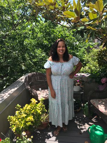 Women summer sweetheart neck puff sleeve polka dots dress casual floral high waistline a line split flowy midi dress.